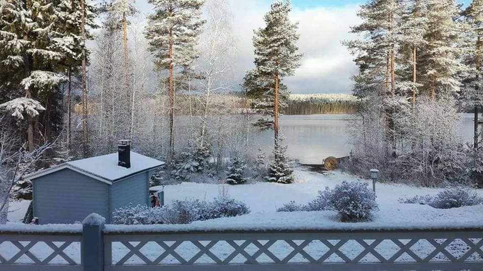 Casa de madera a orillas del lago Sueño finlandés