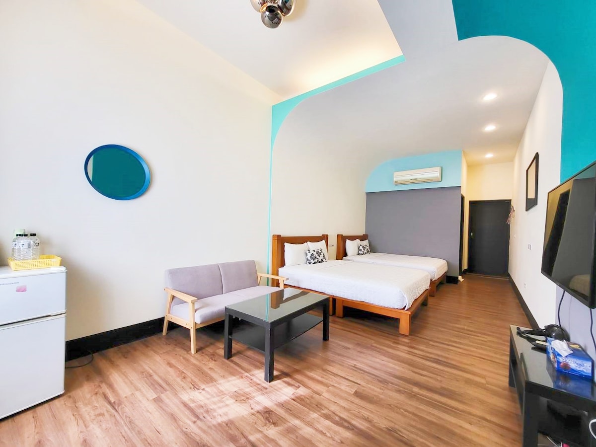 Acogedora habitación cuádruple junto a Kenting Ranch (103), balcón adjunto, baño privado, desayuno. Cerca de Xiaowan Beach y Yenting Street.