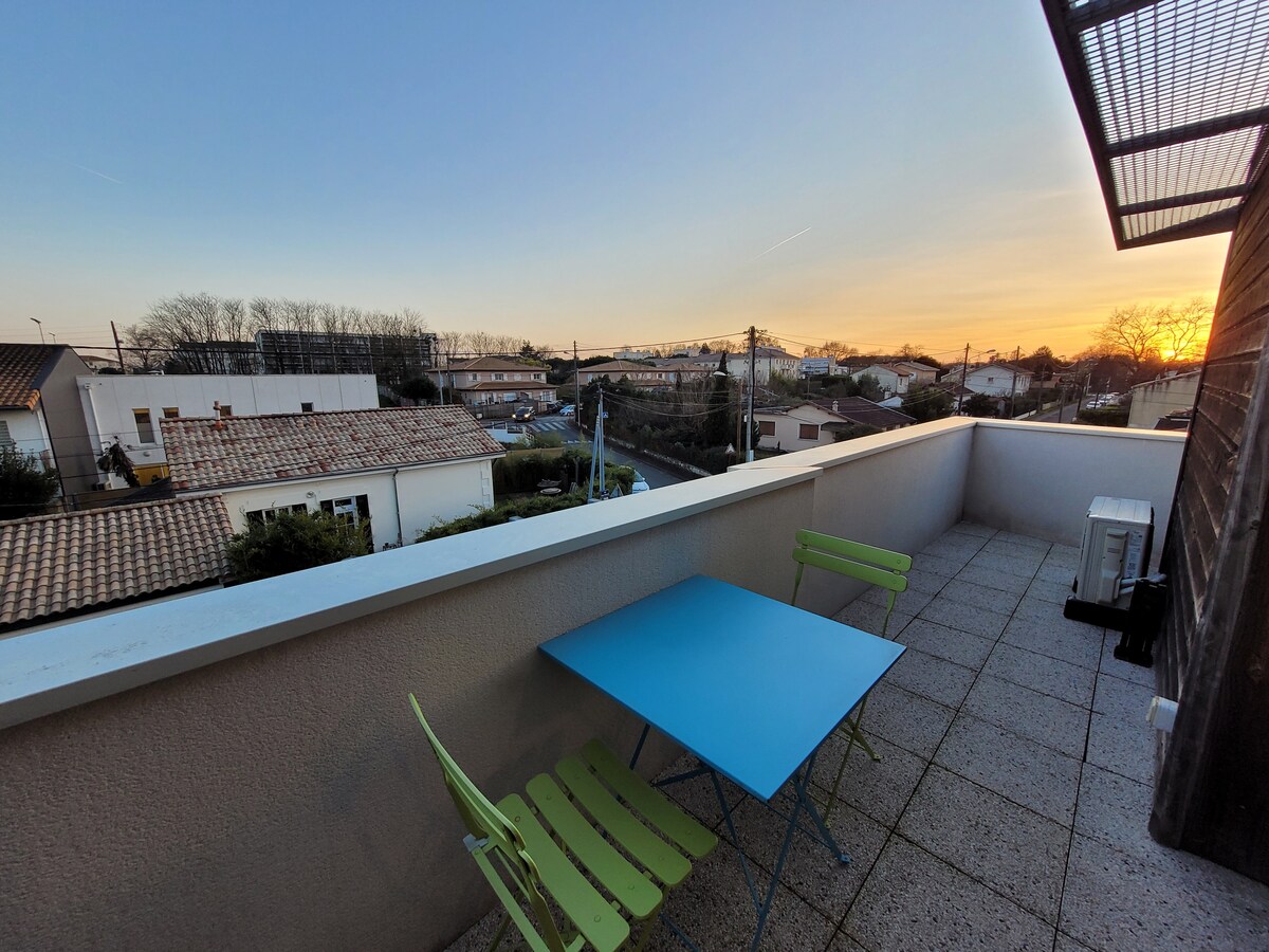 Apartamento cálido y luminoso en una residencia tranquila y segura a las puertas de Burdeos Caudéran. Gran terraza amueblada, aire acondicionado, ropa de cama de alta gama, wifi de fibra rápida para una estadía cómoda. Ropa de cama de percal, toallas, Netflix y cápsulas Nespresso disponibles para comenzar su estadía. Centro de la ciudad a 20 minutos en auto. 2 líneas de autobús directo + Tranvía cercano. Bienvenido, deje sus maletas y disfrute.