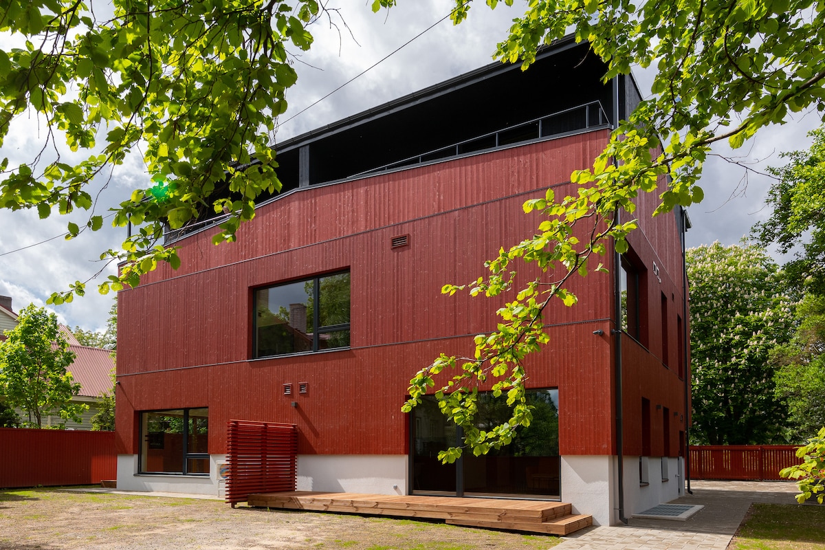 El apartamento de 3 dormitorios está en un edificio nuevo. Situado en una zona tranquila del centro de la ciudad, cerca del casco antiguo de Tallin. Transporte público cerca del apartamento. Gran centro comercial a 3 minutos a pie. Entrada sin llave, ropa de cama, toallas, jabón de manos y champú. Wifi gratuito. Estacionamiento gratuito. Ideal para parejas, aventureros solitarios, viajeros de negocios, familias con hijos y grupos grandes (ofrecemos 5 apartamentos en un edificio). El apartamento tiene balcones y una sauna.