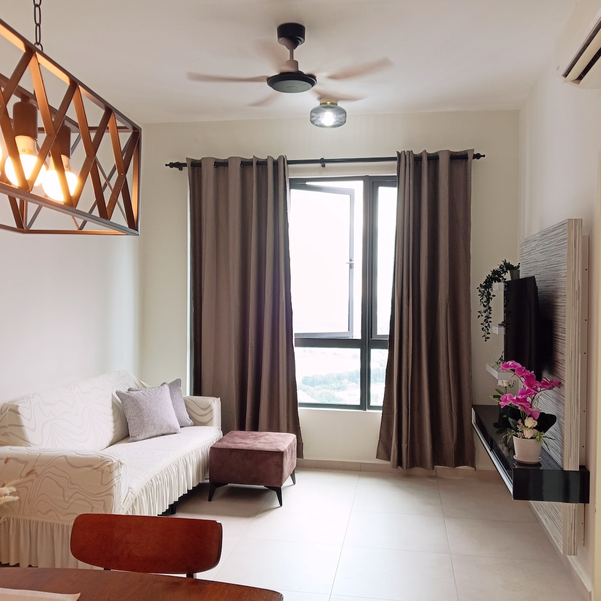 Disfruta de una estancia acogedora y moderna en Meta Residence. Este condominio de 1 dormitorio está diseñado con un cálido espacio de estar, un cómodo sofá y un comedor, perfecto para parejas, huéspedes de negocios o visitas a eventos. 🚶A 1 minuto a pie de Farm in the City y Uptown Equine Park 🚶A 2 minutos a pie del centro deportivo chino, Western Food & Pickleball 🚶A 3 minutos a pie de la estación MRT Putra Permai - Línea 2 A 🚗 15 minutos en auto de IOI City Putrajaya, Pavilion Bukit Jalil