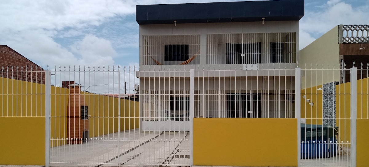 Condomínio que vai da Avenida principal da cidade ate a beira mar(com acesso interno a praia e palhoça exclusiva para cada casa). Sendo essa a Casa 1 com piscina, churrasqueira, ducha e beira mar exclusivos, comporta 20 hospedes muito bem e é próxima a mercados de bairro e em frente ao deposito de bebidas Navegador. Como de costume na região a agua e luz são cobrados a parte Carnaval é negociado em pacote do dia 16/02 ao dia 26/02. Janeiro é negociado apenas quinzenalmente.