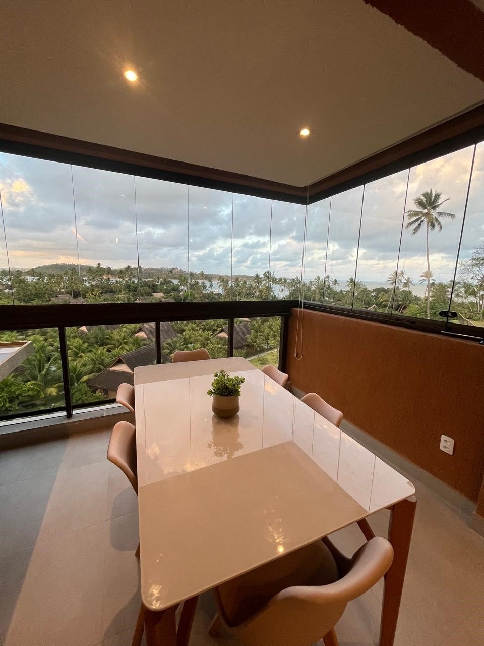 El apartamento se encuentra en el Eco Resort Praia dos Carneiros, frente a la playa. Cuenta con dos dormitorios y 65 m² de espacio habitable. Incluye una suite con cama queen y una suite convertible con cama doble estándar y una cama supletoria. La sala de estar cuenta con un sofá cama y un balcón con cortina de cristal. El apartamento se encuentra en el sector Colina, Torre 5, que, al ser el punto más alto del Eco Resort, ofrece las mejores vistas de la playa, el río y los cocotales.