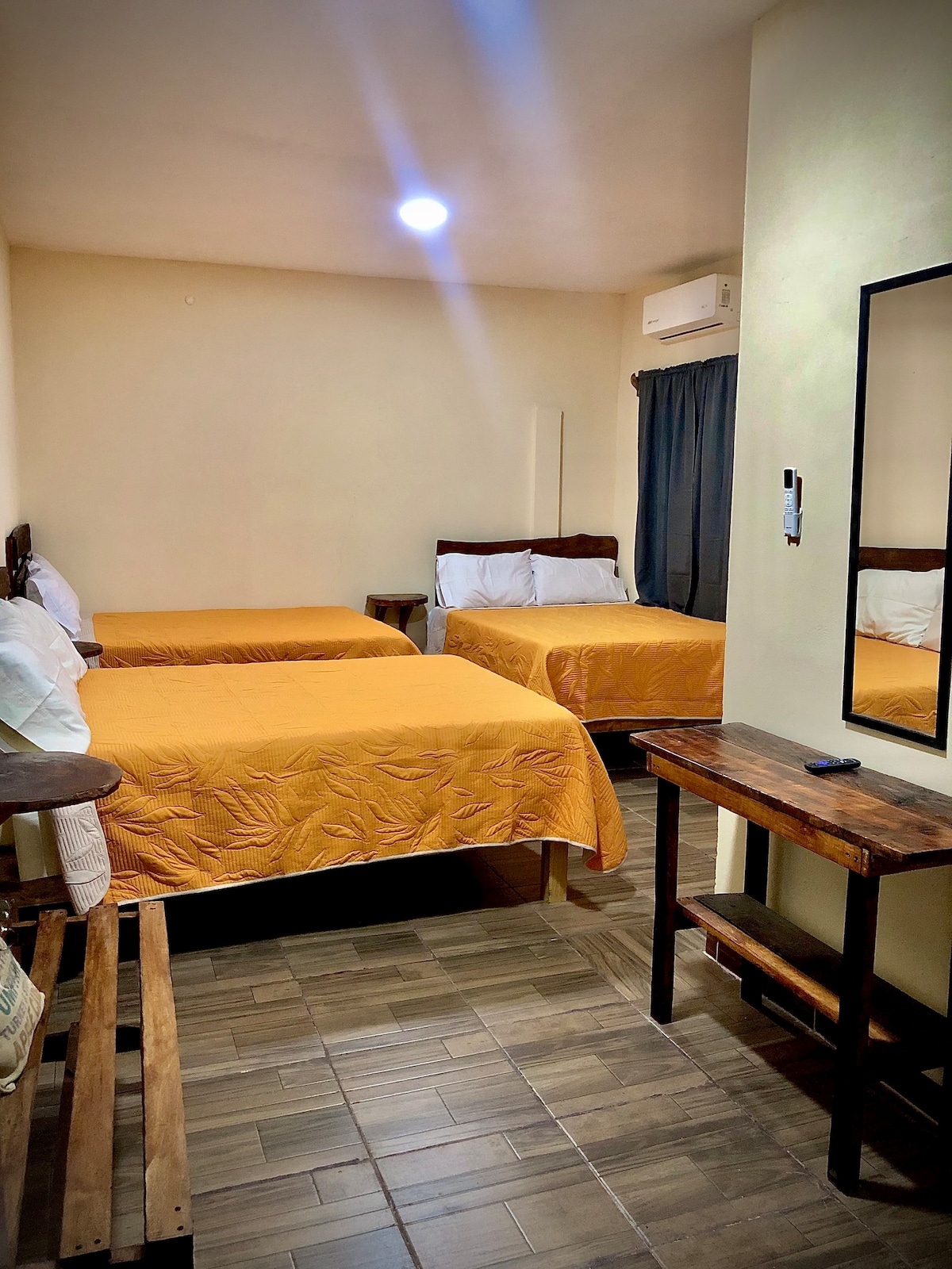 Habitación Doble Matrimonial con Baño Privado – Hotel Raffaello Ubicada en el tercer nivel, nuestra habitación ofrece un ambiente moderno, privado y acogedor, ideal para descansar después de un día de paseo o trabajo. Cuenta con dos camas matrimoniales, baño privado, aire acondicionado, televisión, escritorio y Wi-Fi gratuito. Perfecta para parejas o viajeros que buscan comodidad, tranquilidad y una excelente ubicación en Linares.
