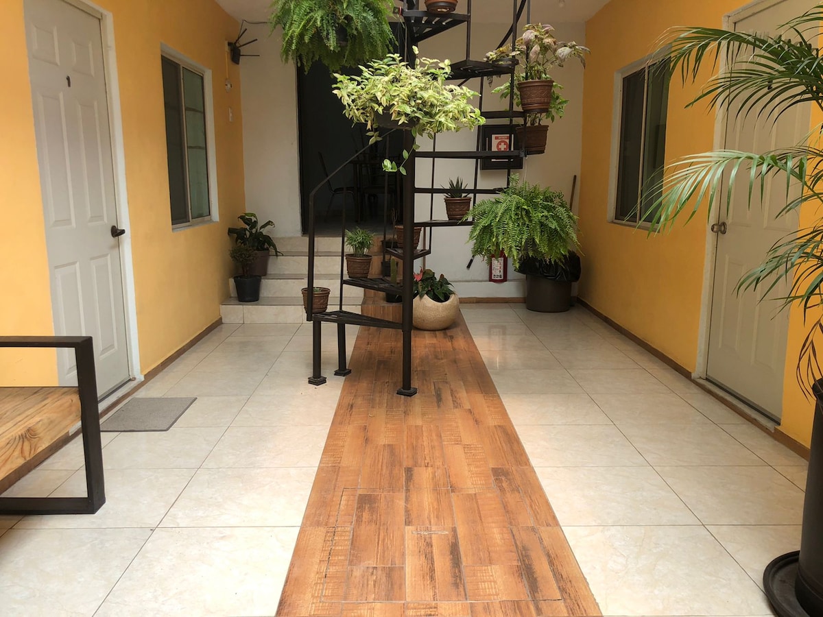 Habitación privada con entrada independiente a solo 2 min de Galerías Altama, hospitales y central de autobuses. Con aire acondicionado, baño privado y TV. ✅ Entrada independiente ❄️ Aire acondicionado 📺 TV en la habitación 🛏️ Cama matrimonial 🚿 Baño privado 📍 Ubicación exclusiva 🔒 Espacio privado 🧼 Limpieza garantizada ⚠️ Notas importantes: El equipo de cómputo no está incluido.