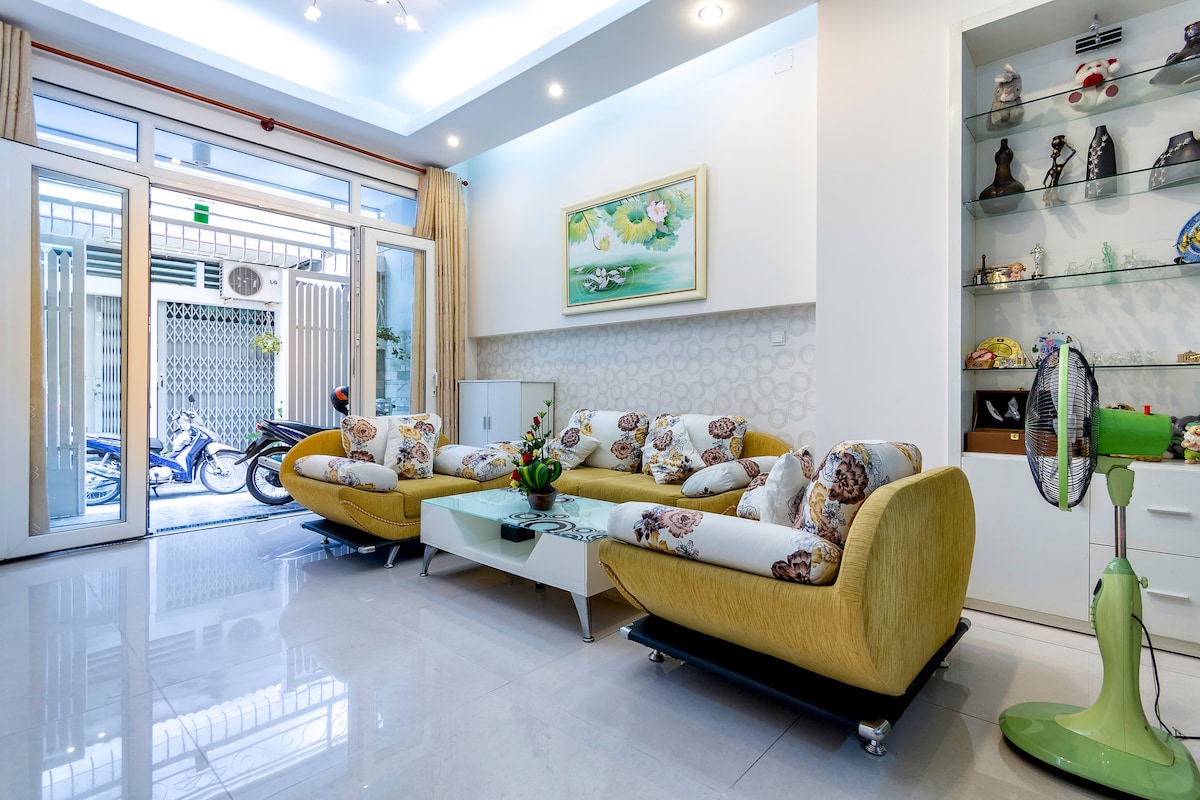 Nuestra casa adosada está situada en una calle tranquila de Saigón, puedes ir caminando al famoso lago Turtle y a la iglesia de Notre Dame en 5 minutos, ¡y disfrutarás de una verdadera sensación de ciudad! Y justo ahí está la oficina de correos central, donde puedes coger el autobús turístico de la ciudad. Especialmente, nuestra casa está a 2 minutos a pie del Centro de Inglés Appolo, una excelente ubicación para tomar el curso CELTA, e ideal para aquellos que buscan una larga estancia justo en el centro de HCMC.
