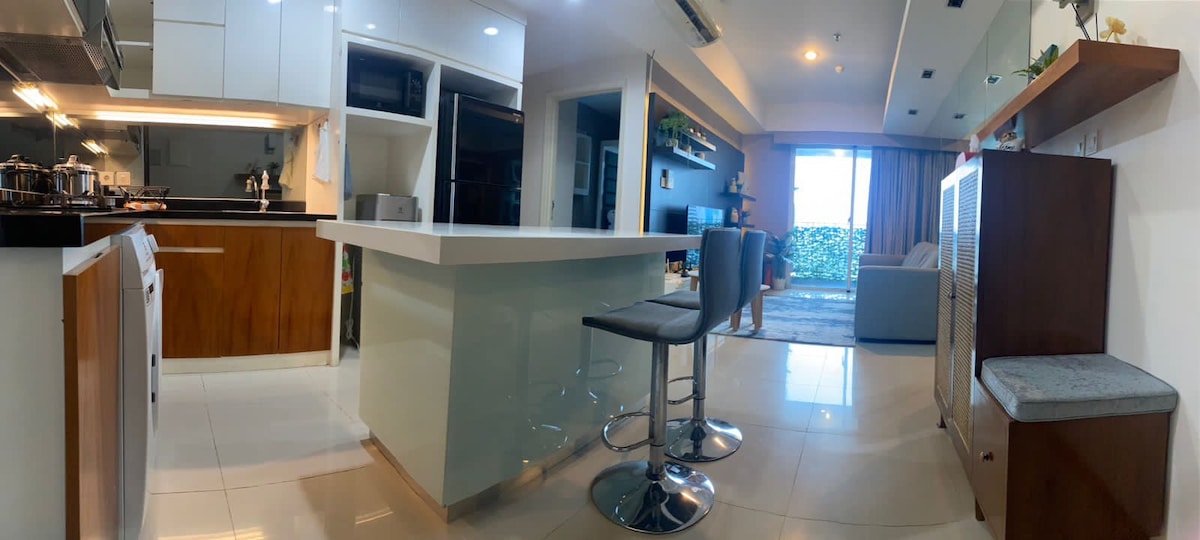 ¡Apartamento SÚPER acogedor TOTALMENTE AMUEBLADO con las mejores vistas a la ciudad y el apartamento más lujoso de esta zona, solo ocho unidades en una planta! Wifi gratuito ilimitado y ropa de cama limpia. La limpieza y tu comodidad son mi máxima prioridad. ¡Espero que tengas una estancia agradable aquí! Situado encima del centro comercial Central Park y muy cerca de 2 grandes centros comerciales: - Centro comercial Neo Soho a 3 minutos a pie. - Centro comercial Taman Anggek a 7 minutos a pie. Compras, restaurantes, cine, gimnasio, salón de belleza, cambio de divisas y supermercado justo debajo del apartamento, en tu puerta <3
