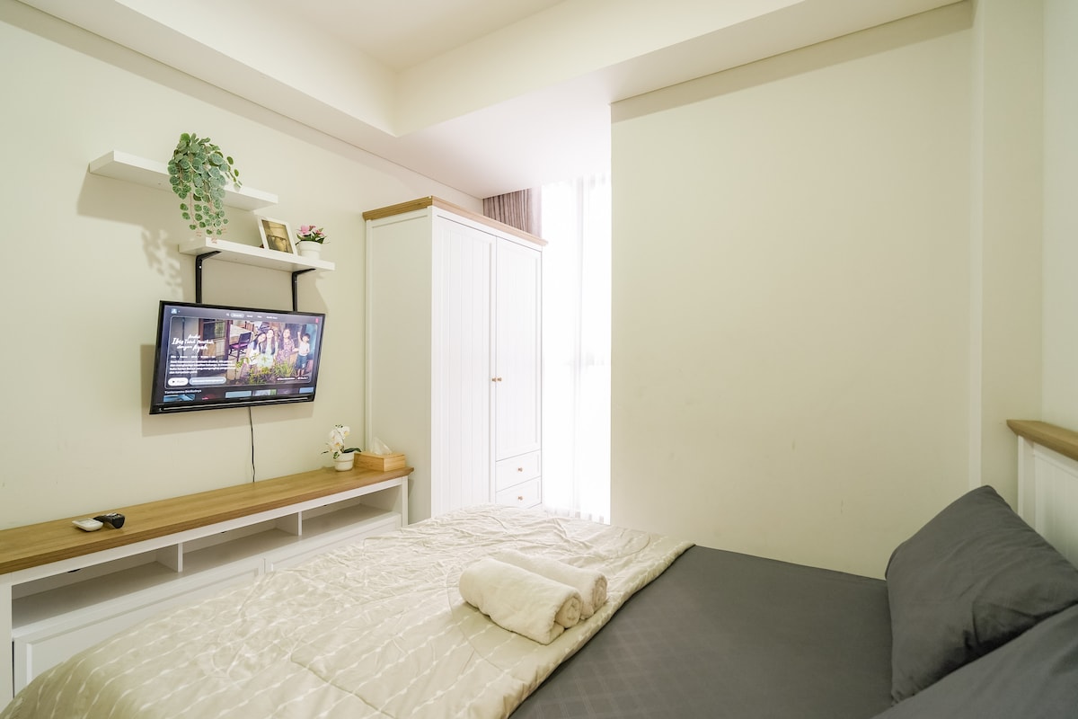 A spacious, cozy 1-bedroom apartment with a living room and balcony at Citralake Suites, West Jakarta's ideal lakeside getaway. Conveniently located just minutes from the Airport, PIK, Puri Indah and Sunset Avenue, it’s easy to explore the city. Step outside and you’re just a 1-min walk from Ciffest, a lively dining area with plenty of food options, supermarkets and ATMs. Our 1 BR unit provides a luxurious and comfortable space for up to 3 guests, with a kitchenette, Free Wi-Fi, and Netflix.
