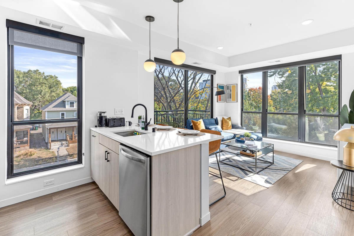 ⭐🌆🌠¡Retiro elegante y moderno de 1 dormitorio💎 perfectamente ubicado cerca del centro de Minneapolis! Esta unidad de nueva construcción combina comodidad y estilo, con cada detalle cuidadosamente diseñado para que te sientas como en casa.🌠🌆⭐ Ubicado en el encantador barrio de Stevens Square, estás a minutos del centro de la ciudad, parques🌳, cafeterías☕, restaurantes🍝 y tiendas🛍️. El acceso rápido a las principales autopistas y al transporte público hace que explorar toda la ciudad sea sencillo, mientras disfrutas de tu tranquila y acogedora base de operaciones.⭐