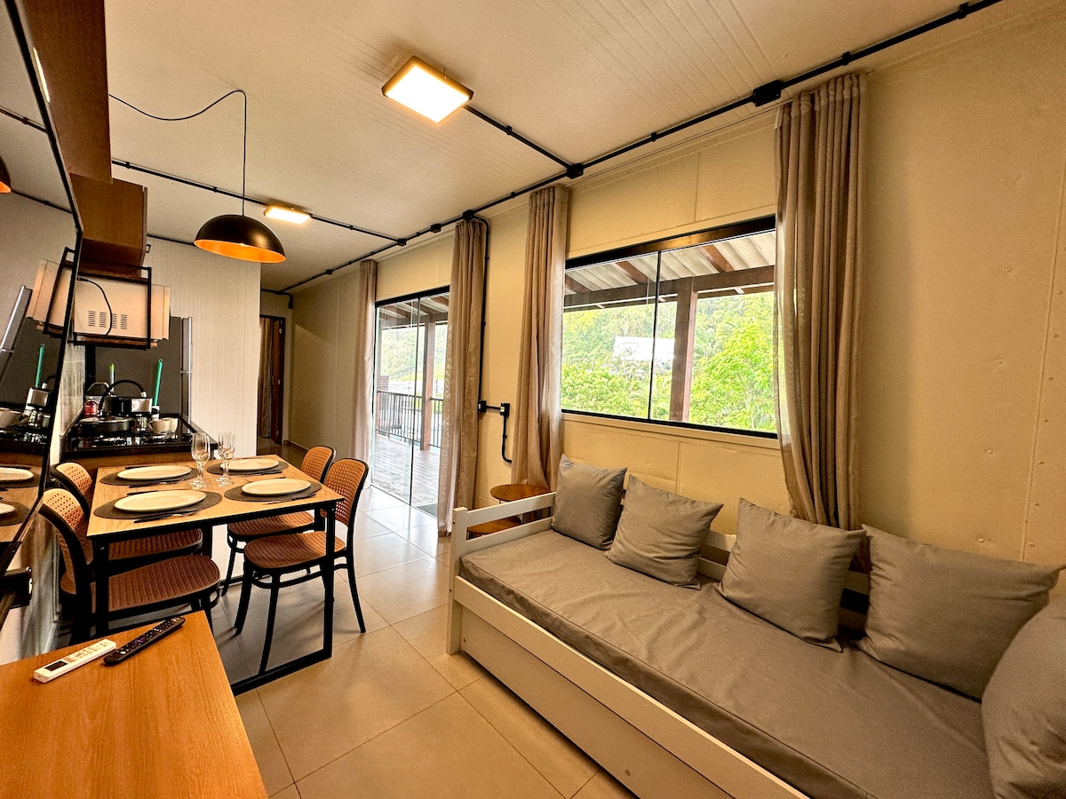 Ven a vivir una experiencia inolvidable en nuestro Chalet en medio de la naturaleza. Ya sea por el mar azul, el verde de las montañas o simplemente relajarse y disfrutar del ambiente. Con vistas al mar de Florianópolis y la Serra do Tabuleiro, ubicado en una región privilegiada cerca de hermosas playas y cascadas, aquí encontrarás tranquilidad combinada con una buena ubicación, a menos de 1 km de la BR 101 en un camino de tierra. NOTA* No recomendado para vehículos rebajados o muy bajos