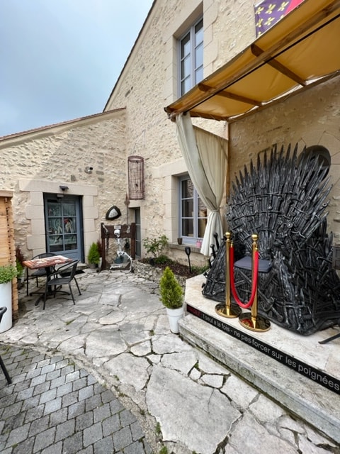 Charroux está clasificado entre los pueblos más bellos de Francia, se alojará en un pequeño estudio independiente dentro de la Kitschinette. Podrá disfrutar de su terraza. descubrirá uno de los 6 tronos de la serie Games of Thrônes. estará a 5 metros de su estudio. Es el único trono en la unión europea. podrá disfrutar de una ubicación en la terraza con una mesa reservada para usted. Posible, pareja acompañada de un niño a condición de prever una cuna