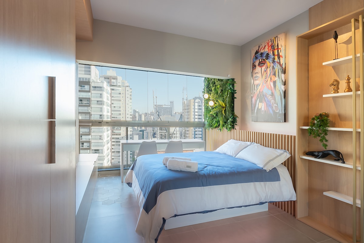 Elegante apartamento de 50 m² ubicado en Bela Vista, tiene portero las 24 horas. 2 dormitorios (solo 1 con aire acondicionado y cama tamaño queen, el segundo es bastante pequeño y se puede utilizar como oficina, con un sofá cama doble) y 1 baño. Con vistas increíbles desde todas las ventanas, es un lugar ideal para trabajar y relajarse. El jet-tube privado en el balcón es un lugar fantástico para disfrutar de las vistas de la ciudad. Ideal para parejas, profesionales o familias pequeñas que buscan comodidad, conveniencia y una de las mejores vistas de la ciudad.