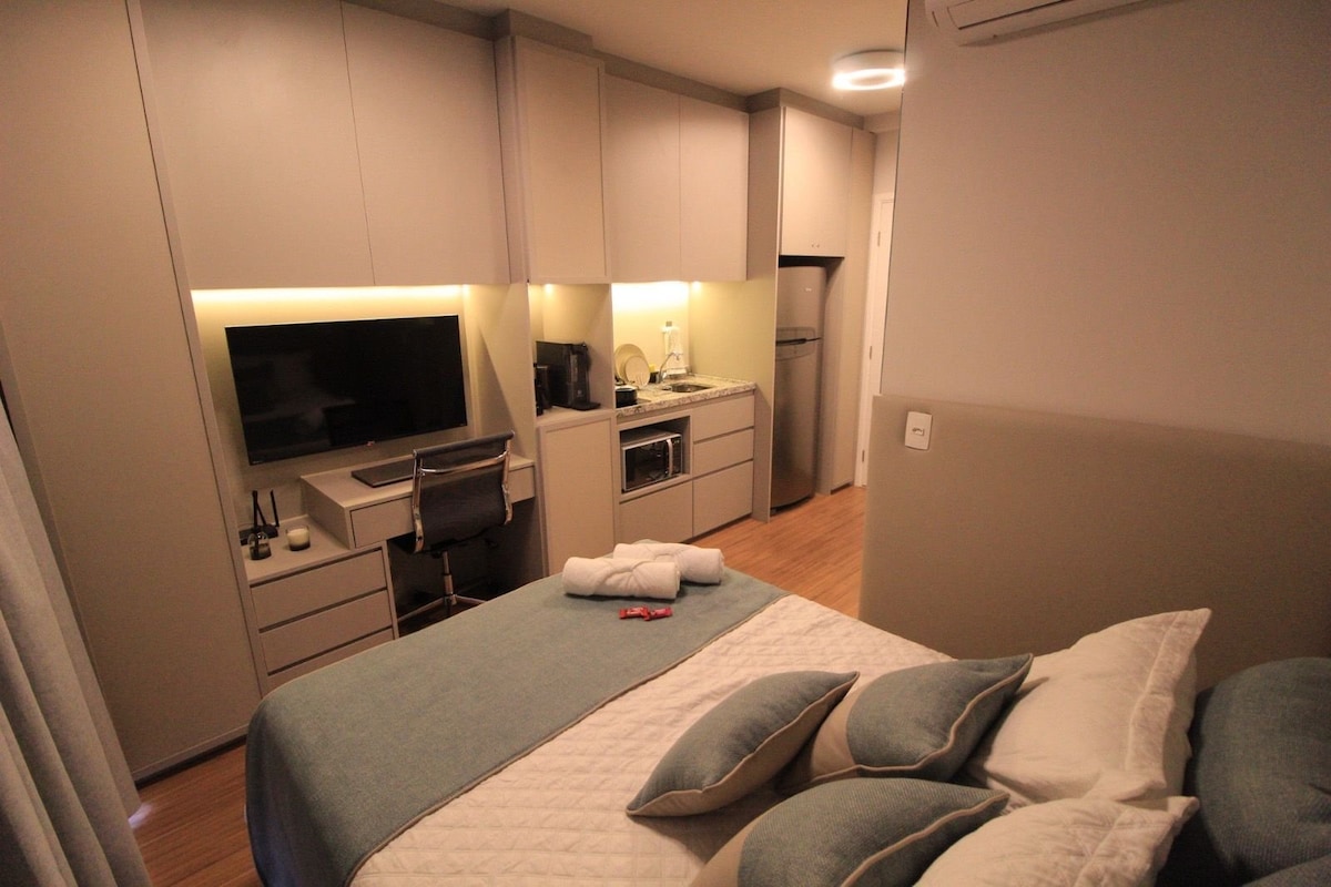 Flexibilidad de check-in/check-out disponible bajo petición; Estudio completamente nuevo en un proyecto recién inaugurado, súper equipado para hacer que su experiencia sea única. Cerca de cualquier lugar de la ciudad de São Paulo (2 líneas de metro, a menos de 2 minutos a pie). Flexibilidad de check-in/check-out disponible a pedido; Nuevo estudio en un edificio nuevo. Totalmente equipado para hacer que su experiencia sea única y más cerca de cualquier lugar de São Paulo (2 líneas de metro, a menos de 2 minutos a pie).