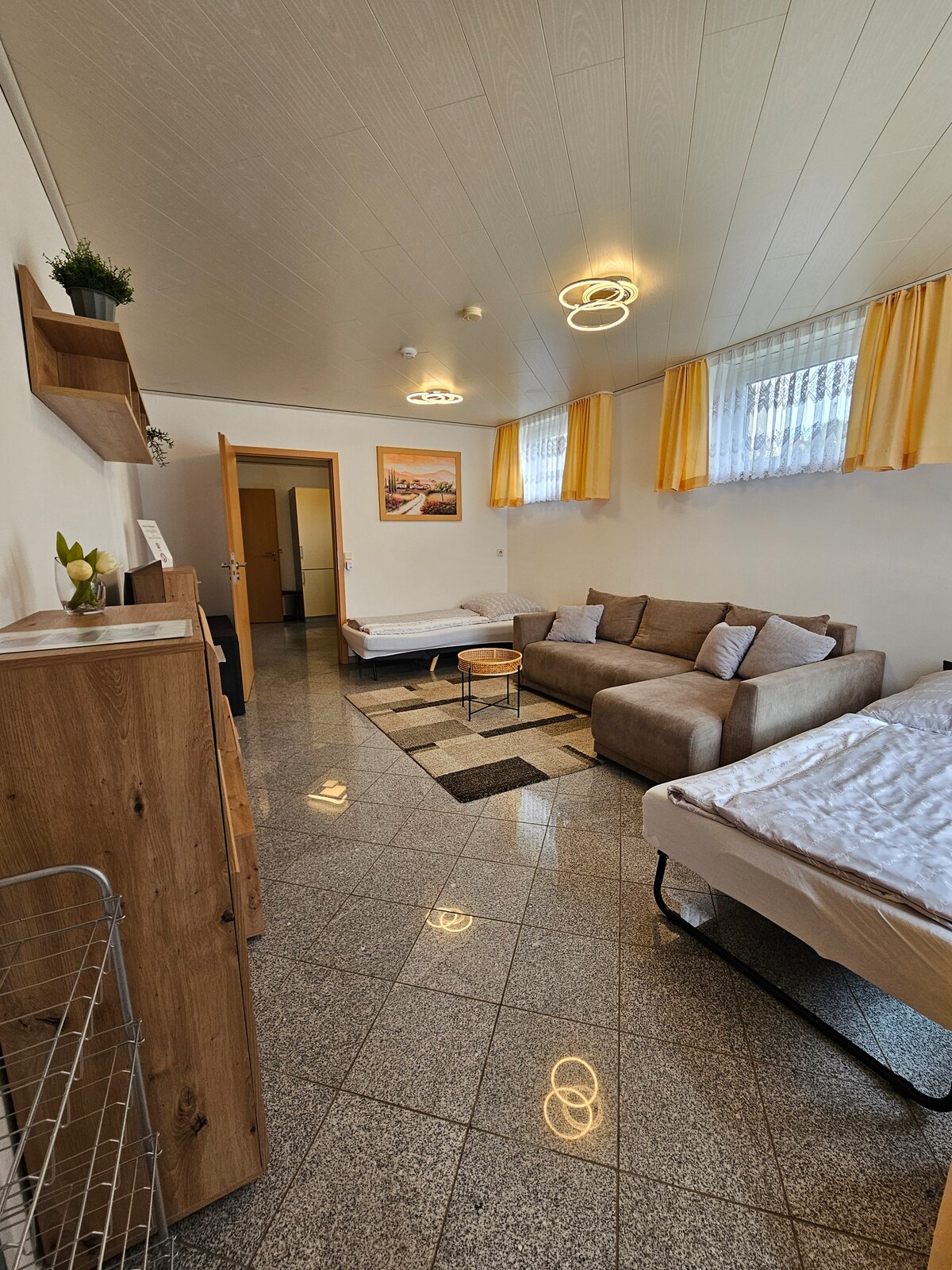 ¡Bienvenido a Sinsheim! Queremos que te sientas como en casa Te espera un luminoso apartamento amueblado con cariño y con una cocina bien equipada. La terraza está conectada con el precioso jardín. El apartamento tiene 54 m² + terraza de 12 m² y una plaza de aparcamiento. Se encuentra en el barrio de Steinsfurt. La proximidad al museo, al estadio y a Palmenbad permite dejar el coche en el aparcamiento propio. La parada de autobús está a menos de 100 metros, la estación de tren a unos 350 metros