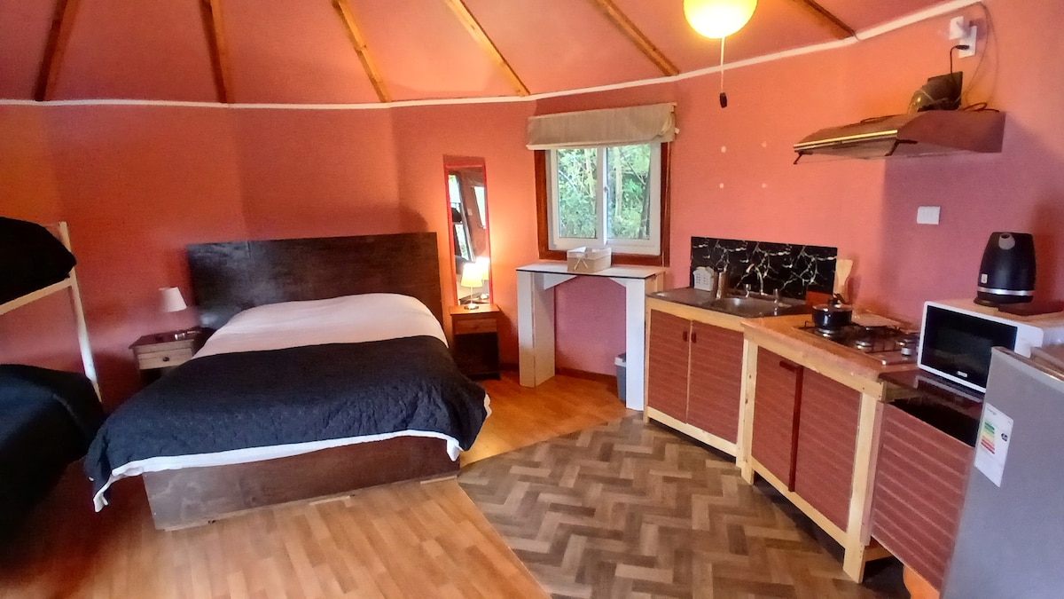 Cabañas tipoYurts. Ciudad, playas y ríos a 20 min.