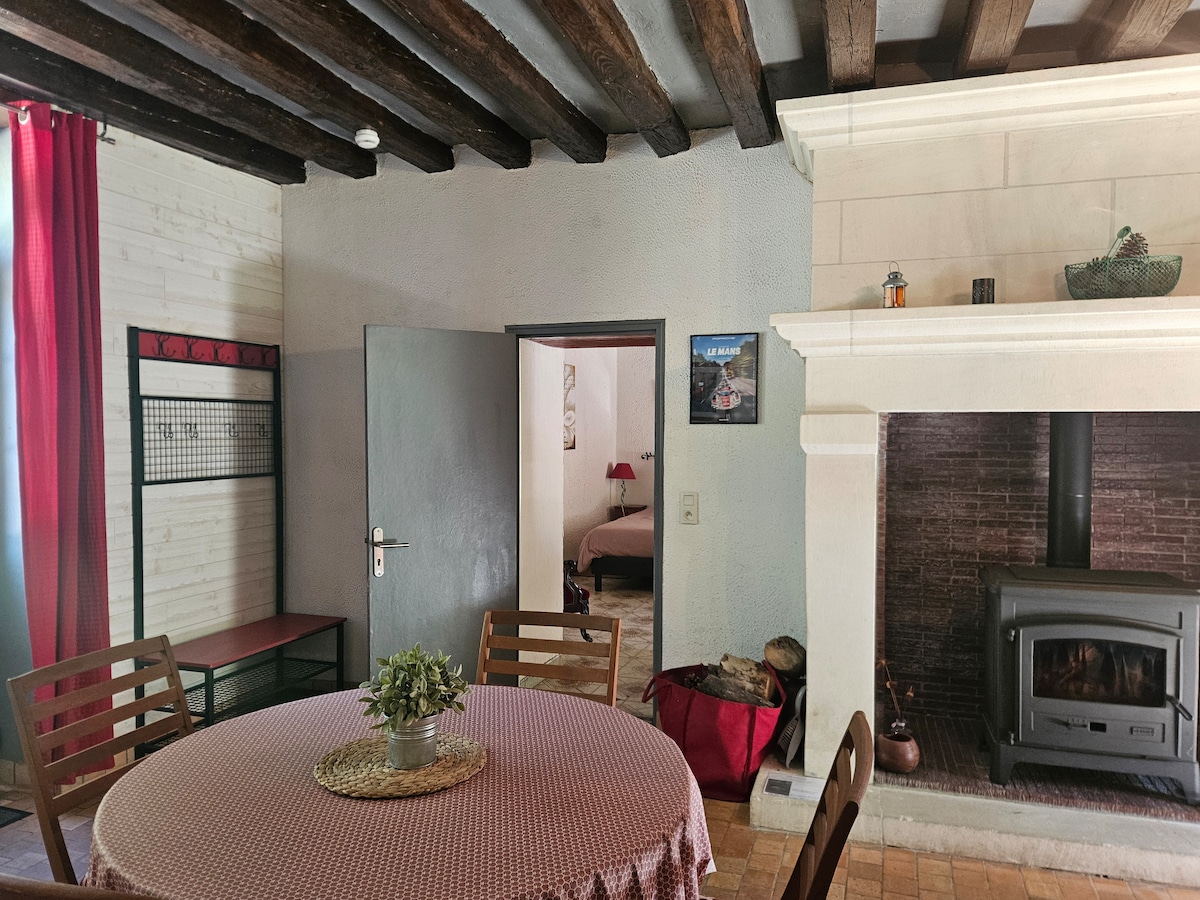 Alojamiento que incluye: - una sala de estar con cocina equipada (nevera, placa eléctrica, microondas, Nespresso), zona de comedor, televisión y sofá cama de 160 cm. - un dormitorio con cama doble de 160 - Cuarto de baño con ducha e inodoro Entorno tranquilo, terraza con muebles, aparcamiento privado. Llegada autónoma. Comercios cercanos: supermercado, panadería, bar-estanco, etc. Cerca de la salida 24 Parigné l'évèque de la A28. Cerca del circuito 24 horas de Le Mans, y del karting