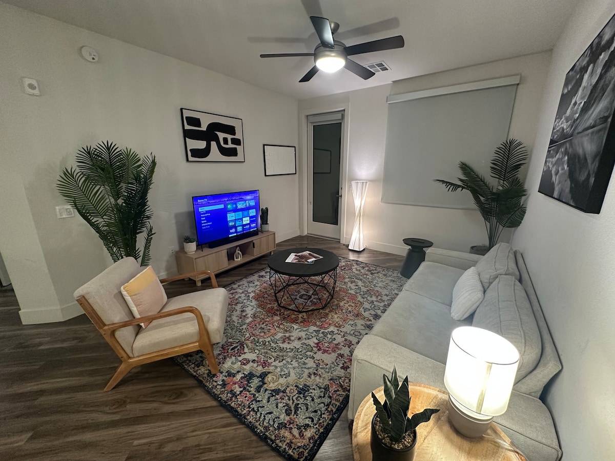 Apartamento de lujo de 1 dormitorio en el corazón de Tempe, a solo 7 minutos a pie de ASU y cerca de Tempe Town Lake, vida nocturna de Mill Ave, Teatro Gammage, Zoológico de Phoenix y Jardín Botánico del Desierto. Perfecto para parejas, familias y profesionales. Cuenta con una cama tamaño king, sofá cama, 2 televisores inteligentes, WiFi, cocina completa, lavadora y secadora, aire acondicionado, artículos de tocador y estacionamiento gratuito. A poca distancia en auto del aeropuerto Sky Harbor, el estadio Sun Devil y Scottsdale. ¡Disfruta de comodidades modernas, las mejores comodidades y un acceso inmejorable a restaurantes, deportes, compras y entretenimiento!