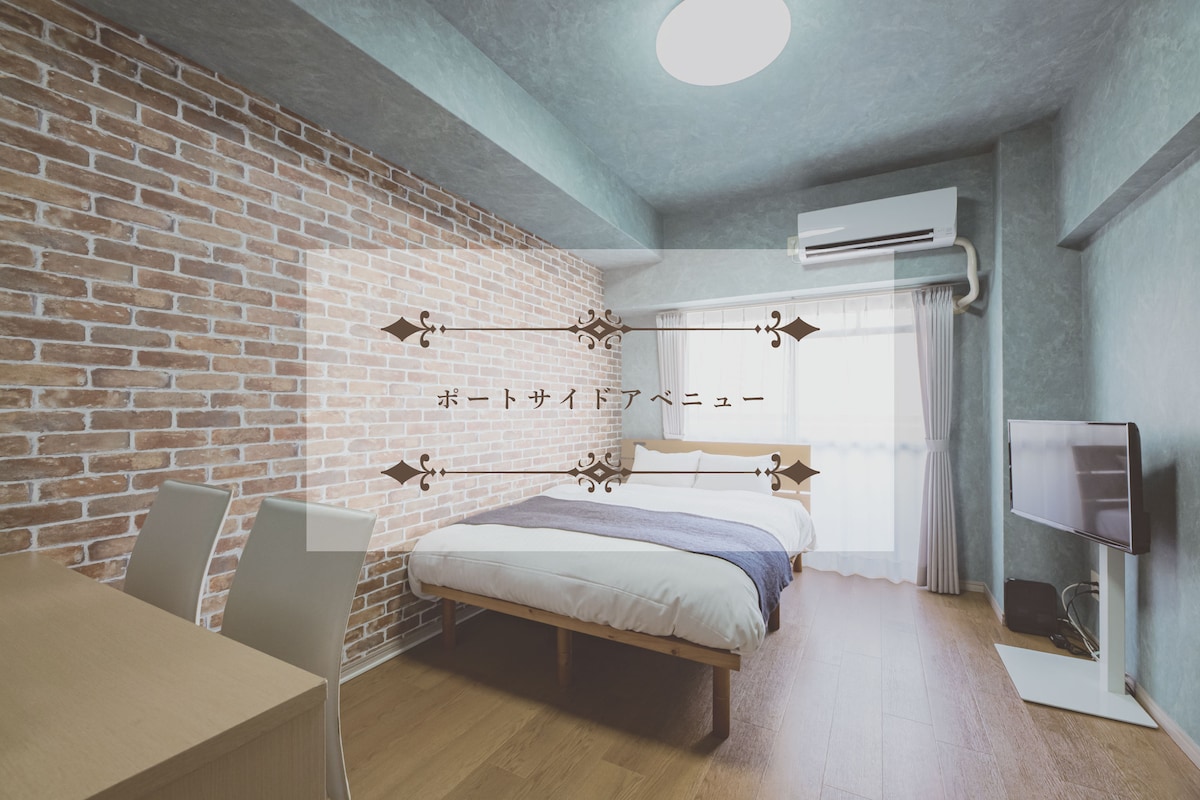 【ポートサイドアベニュー博多】スタンダードルーム ダブルベッド1台 キッチン洗濯機付禁煙 清掃料金別