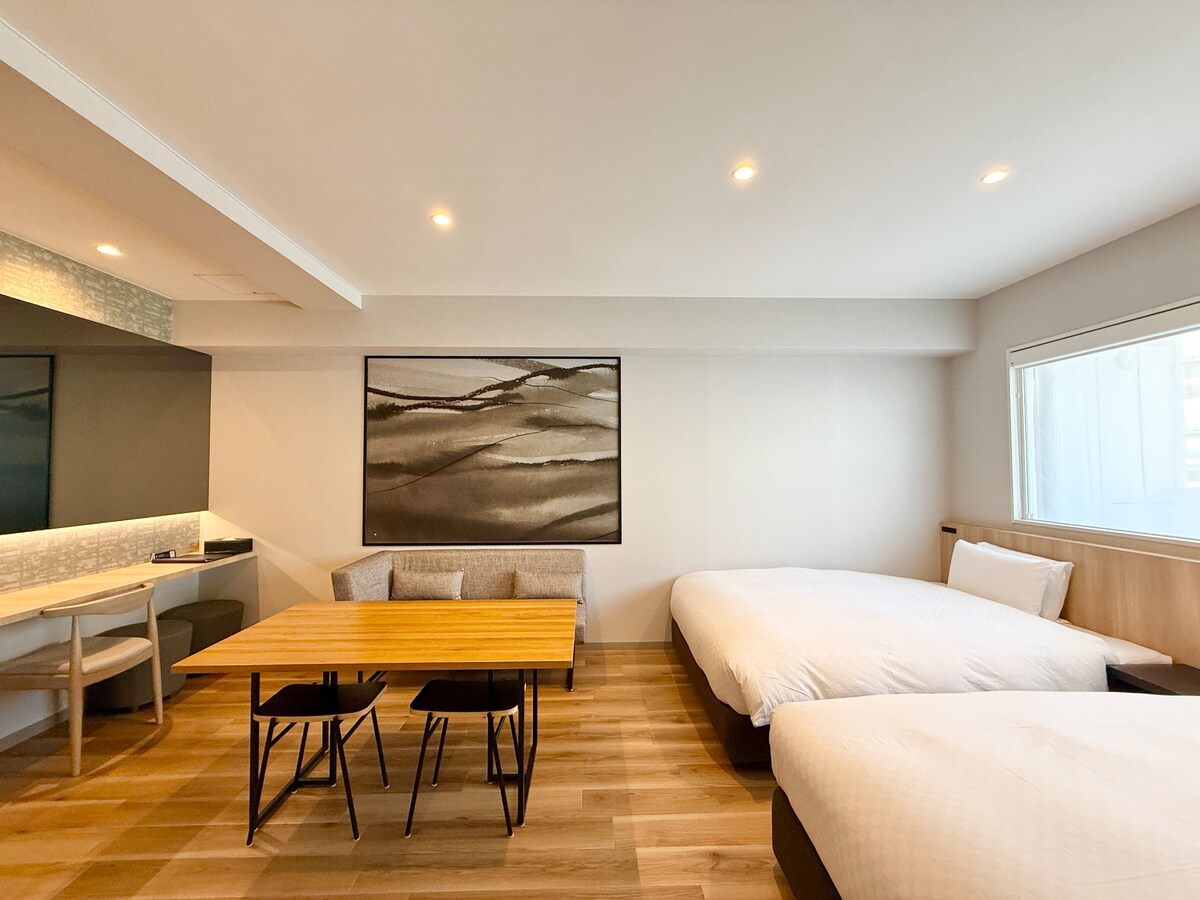 A 6 minutos a pie de la estación de metro de Osaka Shinsaibashi y a 3 minutos de la calle comercial Shinsaibashi Suji, es la mejor ubicación como base para hacer turismo en Osaka. Recién reformado en 2024, este amplio espacio de 46 metros cuadrados está equipado con cuatro camas y puede alojar hasta ocho personas. También cuenta con Wi-Fi de alta velocidad, cocina equipada y muebles de alta calidad. El acceso a lugares de interés turístico, tiendas y restaurantes también es excelente. Disfruta de una cómoda estancia en Osaka.