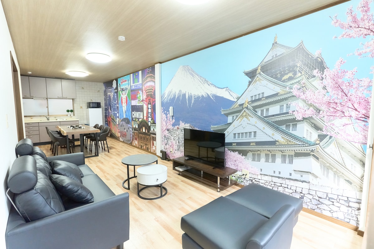 Namba Sta. 10 min/Riverside/Sauna y Karaoke 120㎡/1