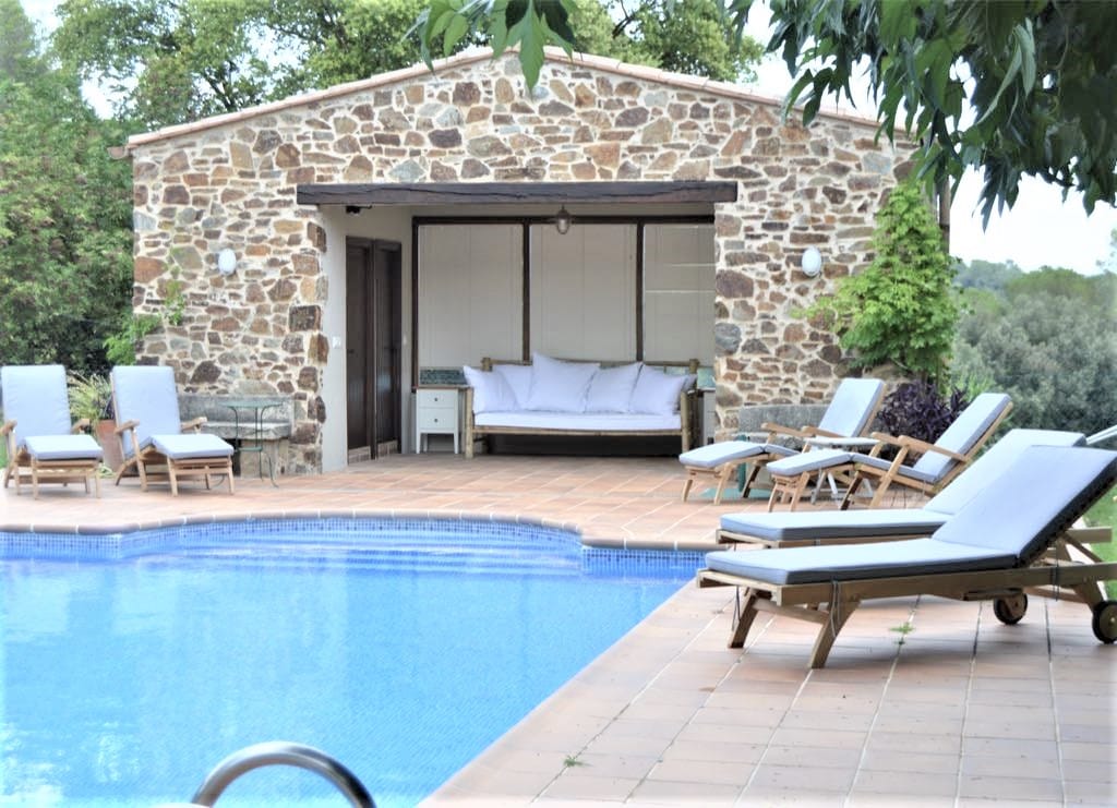 Capacidad para 10 personas. Suite principal con aseo y despacho propios. Suite secundaria con aseo. Tres habitaciones dobles. Dos aseos en zonas comunes. Total 5 habitaciones y 4 baños completos con ducha. Cocina completa con lavaplatos y sala de estar espaciosa en planta baja. Segunda sala de estar en la primera planta. A/C en todas las zonas Porche con BBQ, piscina y lavaplatos exterior. Está ubicada a 15 minutos del centro de Girona y 30 minutos de la playa más cercana (l'Escala, Begur...)