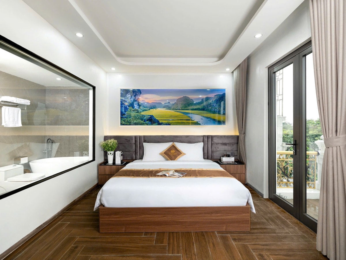 Phòng ngủ sang trọng, tiện nghi cho cặp đôi, gia đình hoặc nhóm bạn, sức chứa 4-5 người👩❤️💋👨👭. Nội thất hiện đại, view nhìn ra hồ sinh thái tự nhiên với những dãy núi đá vôi hùng vĩ của vùng di sản Tràng An, Ninh Bình🍃⛰️. Hoa cỏ núi rừng, không khí trong lành, không gian riêng tư và yên tĩnh sẽ đem đến một cảm giác thư giãn tuyệt vời💐💐💐