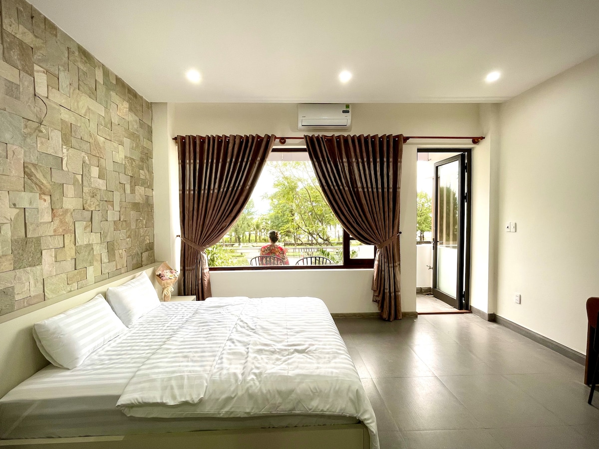 Gracias por tu interés en nuestro espacio. Nuestro lugar está ubicado en una zona tranquila privilegiada en la bahía de Da Nang; y personalmente uno de mis lugares favoritos de la ciudad porque está en lo que considero una zona aún auténtica frente a la playa; y algunas tardes se puede ver a pescadores locales vendiendo pescado fresco en la orilla cercana. Hay algunos restaurantes cercanos que ofrecen opciones tradicionales y occidentales. Las playas visitadas principalmente por turistas y expatriados son fáciles de alcanzar por Grab (aplicación de taxi/aplicación de comida).