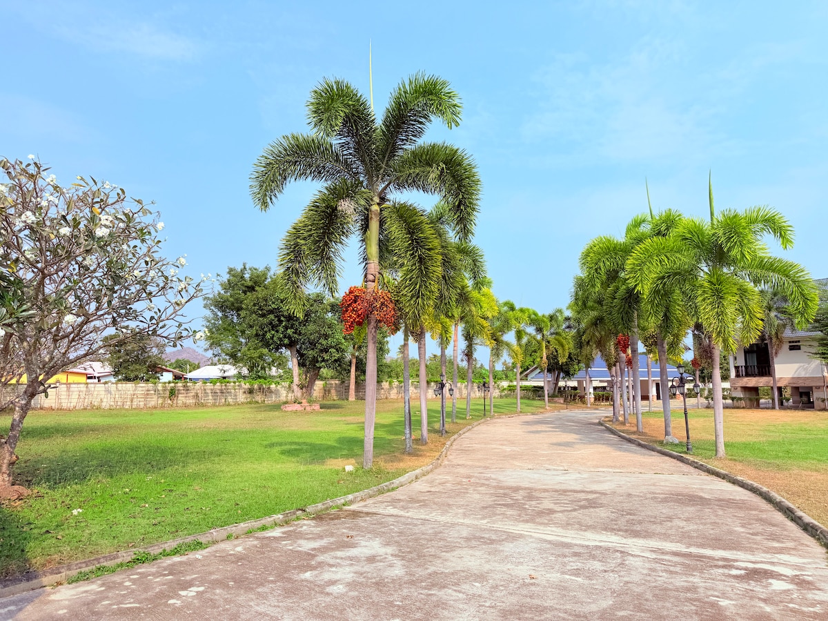 Hua Hin Modern Villa Cerrada Privada Piscina Privada Gimnasio Público en un Barrio Seguro de Baja Densidad.El propietario también vive en este vecindario durante todo el año, por lo que puedes comunicarte con el propietario en persona en cualquier momento después de la llegada.El barrio está separado de la Royal Princess Manor del Territorio Imperial, en un número raro de Hua Hin que utiliza la misma fuente de agua que la familia real, el vecindario está ubicado en una mejor ubicación en Hua Hin, la zona está ventilada y seca, y no habrá moho húmedo en la playa, incluso si el tifón de la temporada de lluvias también se drena sin problemas, no habrá problemas de inundación en la carretera o en la zona durante todo el año, incluso si se produce el tsunami del Pacífico, puedes proteger la seguridad de ti y tu familia de vacaciones en el tifón, terremoto, tsunami y otras condiciones anormales naturales como tifón, terremoto, tsunami.Es un gran lugar para alejarse del bullicio de la ciudad y volver a la naturaleza pura.Cerca del complejo se encuentran el campo de golf Black Mountain y el parque acuático Black Mountain (a 7 minutos en auto), la estación de tren de Hua Hin y la playa (a 10 minutos en auto).El paisaje natural cercano es excelente, el aire es fresco, se puede conducir, alquilar un coche para desplazarse o reservar un coche por teléfono. Varios hoteles cercanos tampoco pueden salir a comer comidas tailandesas auténticas (Grab o Panda). Hay 7/11, supermercado grande BIG-C, mercado, bar, masaje tailandés y otras comodidades cercanas. El costo de vida a largo plazo es más razonable en comparación con los lugares cercanos famosos de Internet junto al mar.