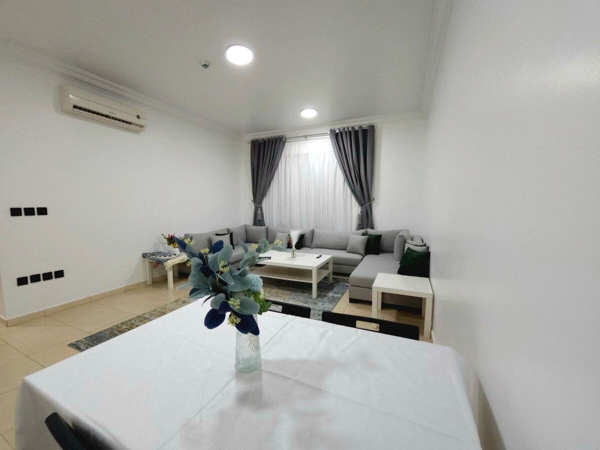 Bienvenido a Z Residence by Dayf, que cuenta con dos dormitorios con amplio espacio en el armario. La sala de estar incluye un sofá y un comedor con una mesa de 6 plazas. La cocina totalmente equipada cuenta con electrodomésticos modernos, como nevera, estufa, microondas, horno y lavadora, junto con utensilios de cocina y vajilla. Nuestro apartamento ofrece dos baños con duchas y lavabos. El apartamento está convenientemente ubicado a 2 minutos a pie de la estación de autobuses que puede llevarte a Al-Haram en 15 minutos.
