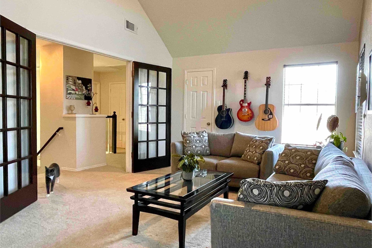 Bienvenido a nuestra nueva casa adosada ubicada en la encantadora ciudad de Allen, Texas. Con amplias salas de estar, una decoración elegante y todos los servicios que necesitas, nuestro alojamiento es el lugar perfecto para relajarte y disfrutar. Nuestra casa se encuentra en un barrio residencial tranquilo, a pocos minutos de las mejores atracciones de Allen. Estarás a poca distancia en coche del Centro de Eventos Allen y de los Allen Premium Outlets. ¡Estamos deseando recibirte en nuestra encantadora casa!