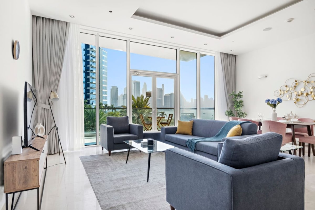 Experience beachfront living at Grand Bleu Tower on Dubai’s exclusive Emaar Beachfront. This stylish 1BR offers breathtaking views of the Atlantis, Palm Jumeirah and Arabian Sea — stunning by day, mesmerizing at sunset, and sparkling at night. Unwind by the infinity pool, relax on the private beach, or enjoy the calm from your balcony. Designed for comfort and elegance, it’s the perfect setting for an unforgettable Dubai stay.