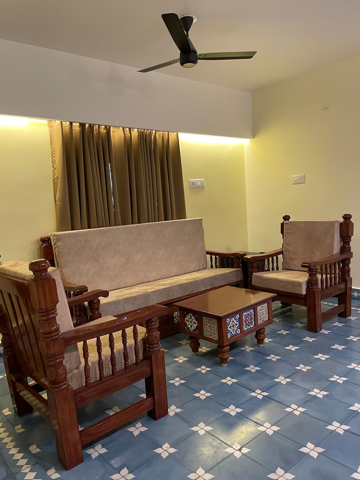 Tu base ideal en Trichy: hogareña, espaciosa y conveniente. Perfecta para familias y grupos que buscan comodidad y conveniencia. 3 habitaciones, las 3 con baño adjunto, todas las habitaciones con aire acondicionado y caldera. Propiedad nueva y limpia. Ubicado en el corazón de Trichy, a 10 minutos en auto de Srirangam, Rockfort y Tiruvanaikovil.