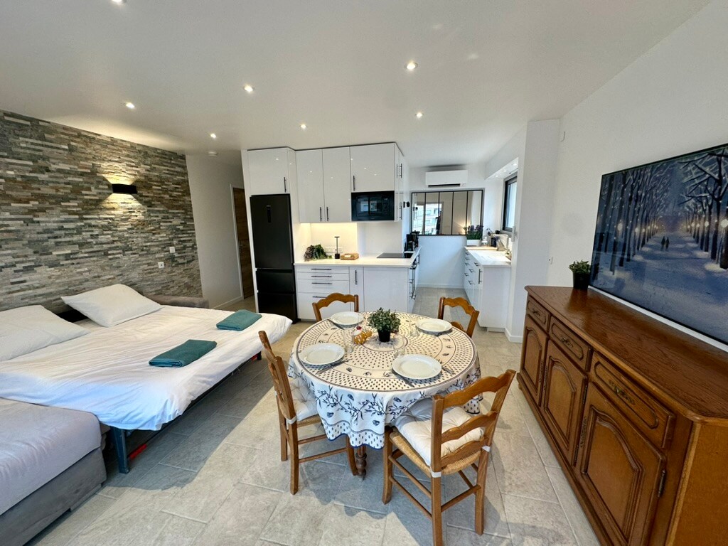 Encantador estudio de 23 m² en la planta baja, totalmente renovado, a dos pasos del mar Muy luminoso gracias a su orientación sur, con vistas al mar, aire acondicionado y fibra Sofá cama rápido nuevo (marzo de 2025) que ofrece una cama espaciosa y una excelente comodidad, cerca de una cama real, gracias a su colchón firme de 21 cm Estacionamiento privado incluido Ideal para una pareja con un niño o adolescente (3 adultos como máximo). Se proporcionan sábanas y toallas ✨ Perfecto para una estadía relajante junto al mar