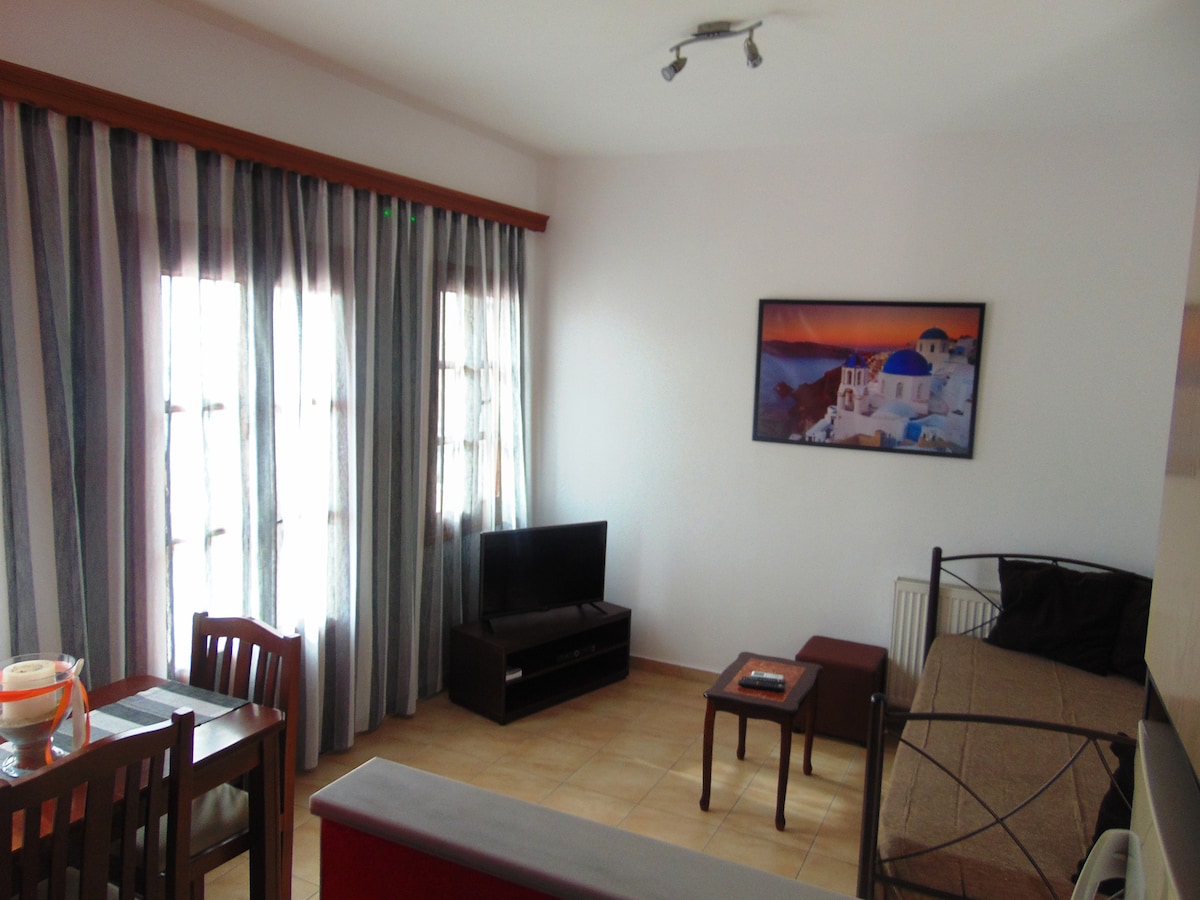 ROCK CAVE HOUSE has a bedroom with a double bed, a living room with a single bed , a private fully equipped kitchen, a private shower room and a private veranda with perfect view to the sea , the caldera ,the volcano and the traditional village of Oia . It is located on the caldera cliff of Oia and it is only 5 minutes walking distance far from center of Oia ,shops and restaurants. Daily cleaning service is included and the porter service also