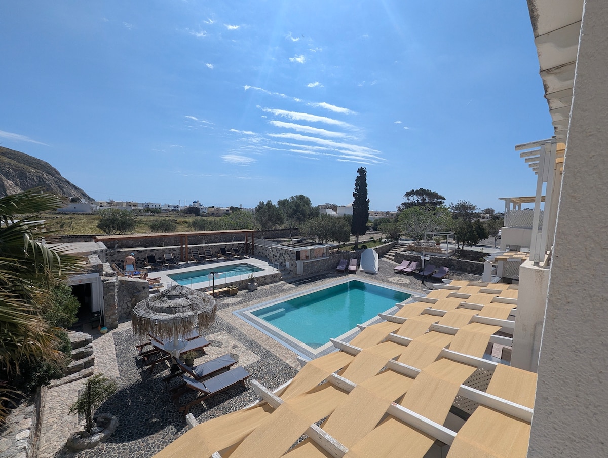 Vistas a la Caldera sin las multitudes que tanto temes. Sin paredes compartidas, sin terrazas compartidas y sin ruido de la calle. En Chrisofilida, no solo reservas una suite, sino que obtienes una villa independiente completa rodeada por nuestro viñedo y a solo 7 minutos en auto de la capital de la isla. Transmitida de generación en generación, esta es la auténtica Santorini. Desde nuestra arquitectura tradicional hasta nuestra hospitalidad auténtica, espera que te traten como a un miembro de la familia.