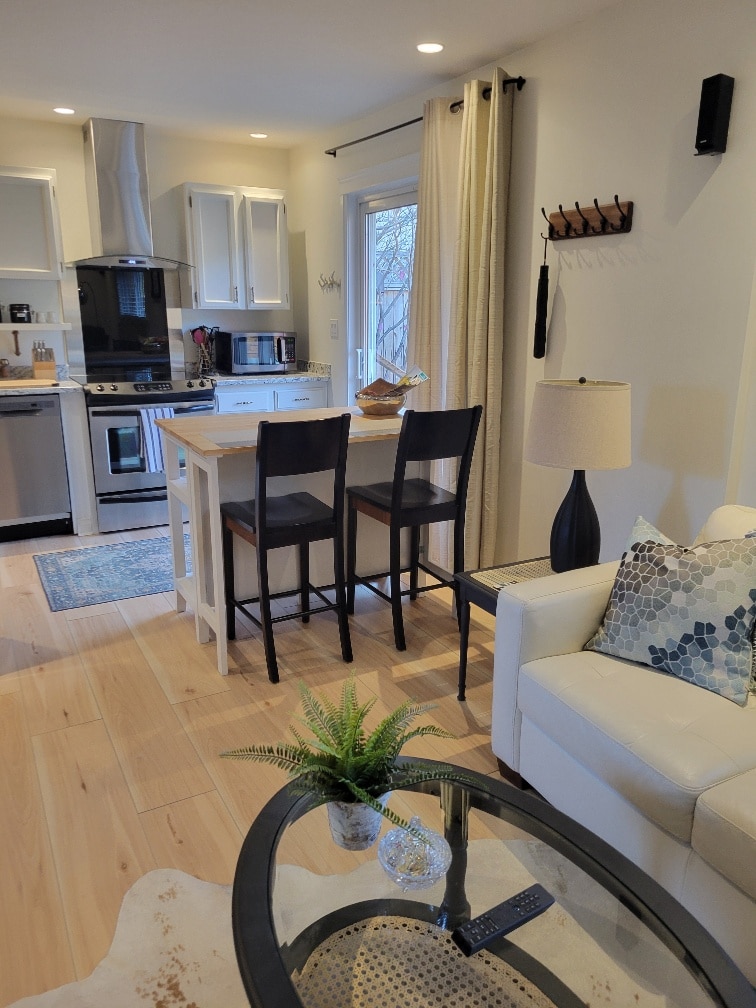 Esta acogedora suite pequeña se encuentra en una calle tranquila a pocos minutos del centro de la ciudad, senderos, playas y todas las demás comodidades. La cocina pequeña está bien equipada con varios suministros y elementos básicos. Al otro lado de la habitación hay una cómoda cama tamaño queen con sábanas limpias y muchas almohadas. También se incluyen dentro de la suite un baño de 3 piezas bien surtido, un juego de comedor, un televisor inteligente, un armario con banco y una bata. ¡La bañera de hidromasaje es maravillosa para relajarse después de un día lleno de aventuras!