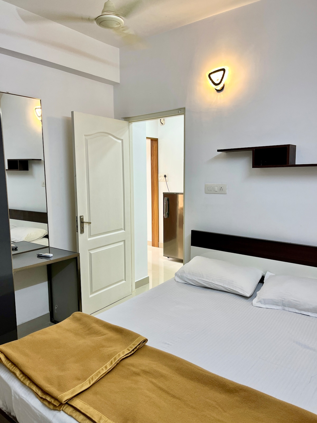 Peaceful and safe location. Just 2 km from Swaraj Round. Walkable to Jubilee Mission Hospital and Lourde Church. Starbucks, HiLITE Mall, and Selex Mall close by. Thrissur Railway Station 3.8 km. Swiggy, Zomato, Blinkit, and Instamart deliver essentials. Uber and tukxi available for travel. Guruvayoor Temple 29 km. Kochi Airport 51 km. Convenient base to relax and access everything fast.