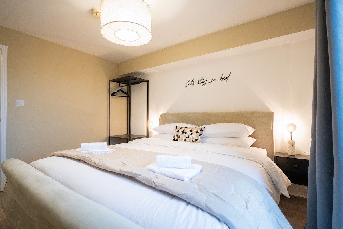 Experimenta la elegancia urbana: sumérgete en este elegante y bien amueblado refugio en South Ockendon, Essex. Accesible a las conexiones de transporte con un corto paseo a la estación de tren de Ockendon, que está a 20 minutos en coche de West Ham o a 40 minutos del centro de Londres. Perfecto para parejas y profesionales que trabajan. Cuenta con una elegante sala de estar con TV inteligente y un hermoso sofá que se convierte en un sofá cama, con una cocina moderna y un gran dormitorio doble, cama tamaño king y TV inteligente.