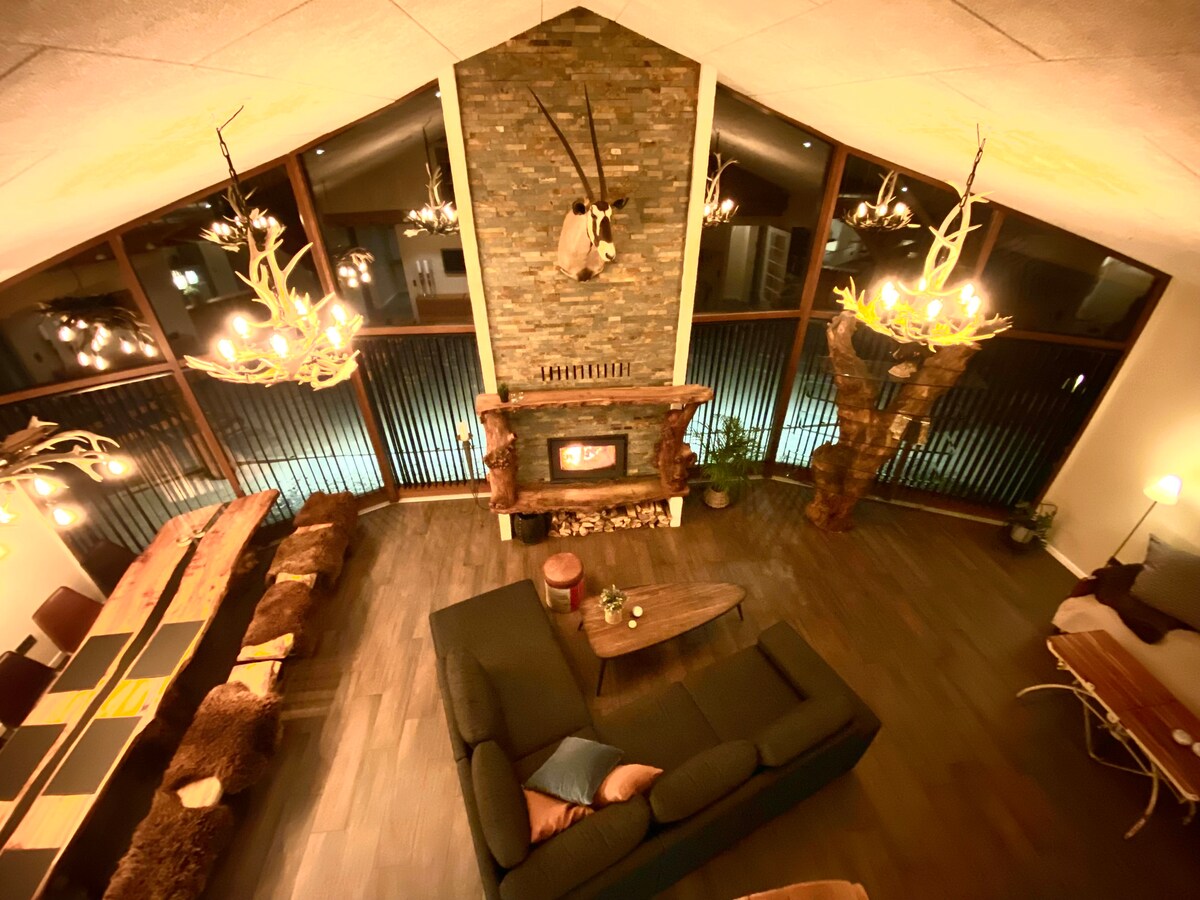Aquí puede estar en contacto con la naturaleza en y alrededor de una pequeña casa de campo elegantemente decorada de 35 metros cuadrados. equipado con nichos y desvanes. Alrededor de la casa hay terrazas con sauna, ducha al aire libre, cocina al aire libre con parrilla de gas y horno horno de pizza, fogata y refugio. Esto significa que la casa de verano es tan adecuada como "nido de amor" para una pareja que quiere disfrutar de la compañía en un entorno acogedor como para los amigos, que les gusta la vida al aire libre, tal vez incluso con alojamiento al aire libre.