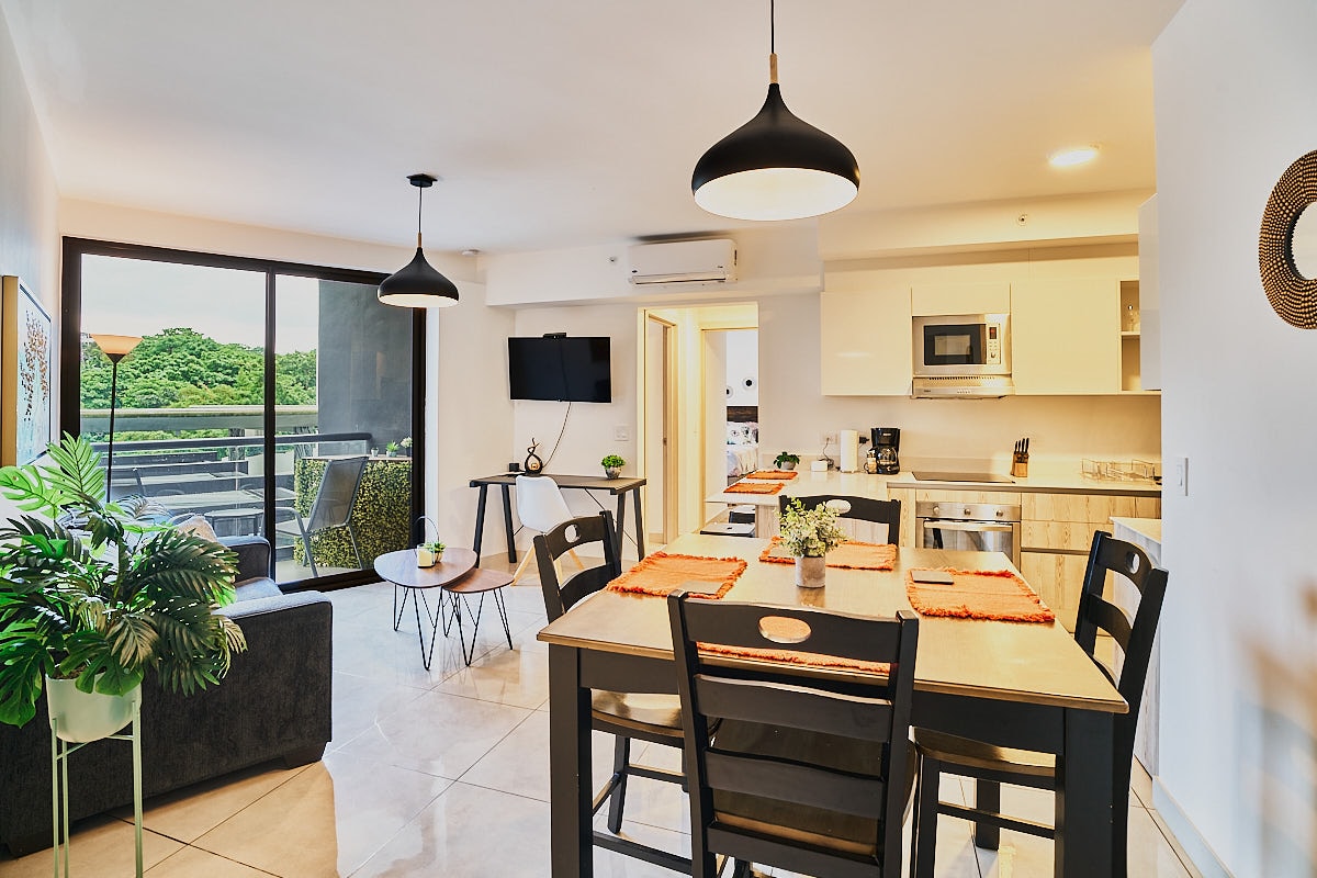 ⛄️ ❄️ Equipado con aire acondicionado en todo el apartamento, lo que garantiza comodidad en todas las habitaciones, incluida la habitación principal, la sala de estar y el comedor. Te damos la bienvenida a tu retiro elegante y totalmente equipado, perfecto para parejas, familias o viajeros de negocios que buscan comodidad, conveniencia y un toque de lujo. Ubicado a 20 minutos del aeropuerto SJO, cerca del Estadio Nacional y del Parque La Sabana en San José.