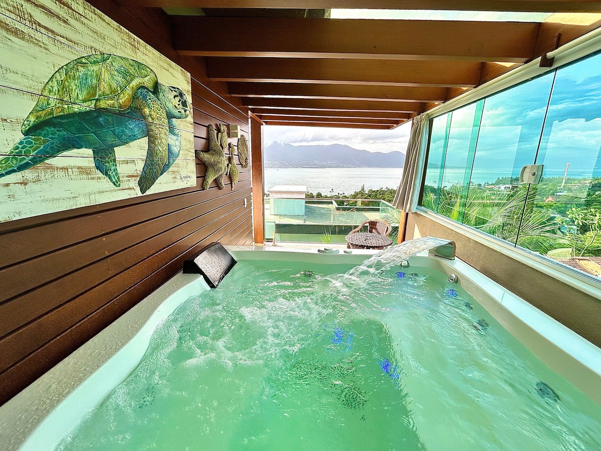 Casa nueva, moderna, de alto nivel, diseño firmado y vista inigualable. Piscina infinita, climatizada, con vistas al mar y a 180º de las playas de Toque Toque Grande, Calhetas y a la puesta de sol. Entre octubre y marzo, el sol se pone junto al mar. Ofrece privacidad absoluta, estando inmerso en el Bosque Atlántico, pero con fácil acceso por carretera. Seguridad total con monitoreo remoto. Lugar único y tranquilo, con mucho estilo y comodidad. Paga en 6 cuotas sin intereses