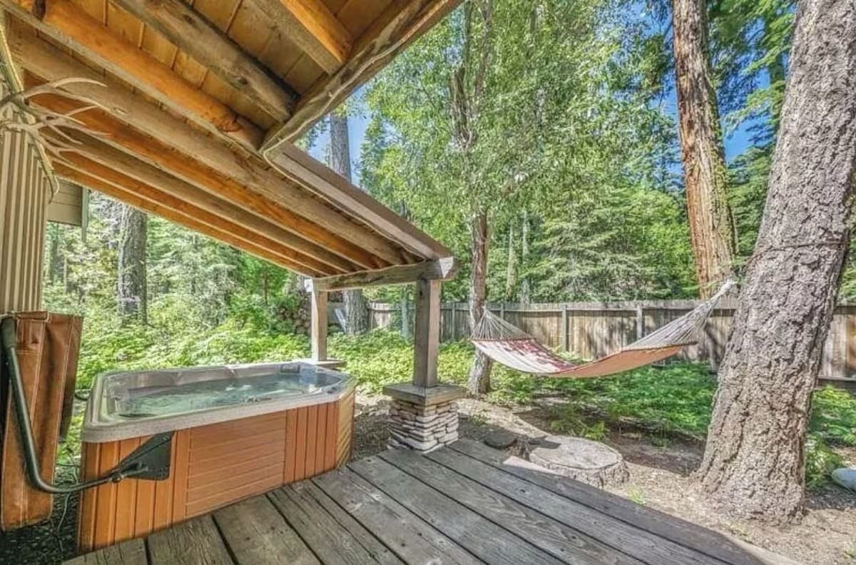 El Chalet 300 l Tahoe West Shore Cabin Esta adorable y auténtica cabaña de pino tiene todos los lujos de la vida en una casa pequeña y está a pocos pasos de Sunnyside y el lago Tahoe. Ubicada entre los pinos, exuda lo último en una visita de estilo de vida de montaña. Completamente renovada, este alojamiento de un dormitorio y un baño tiene todos los electrodomésticos nuevos en la cocina renovada, un baño nuevo, una sala de estar ecléctica y un dormitorio acogedor. Las grandes ventanas dan a los pinos y a la espaciosa envoltura alrededor de la cubierta. El lago Tahoe está muy cerca.