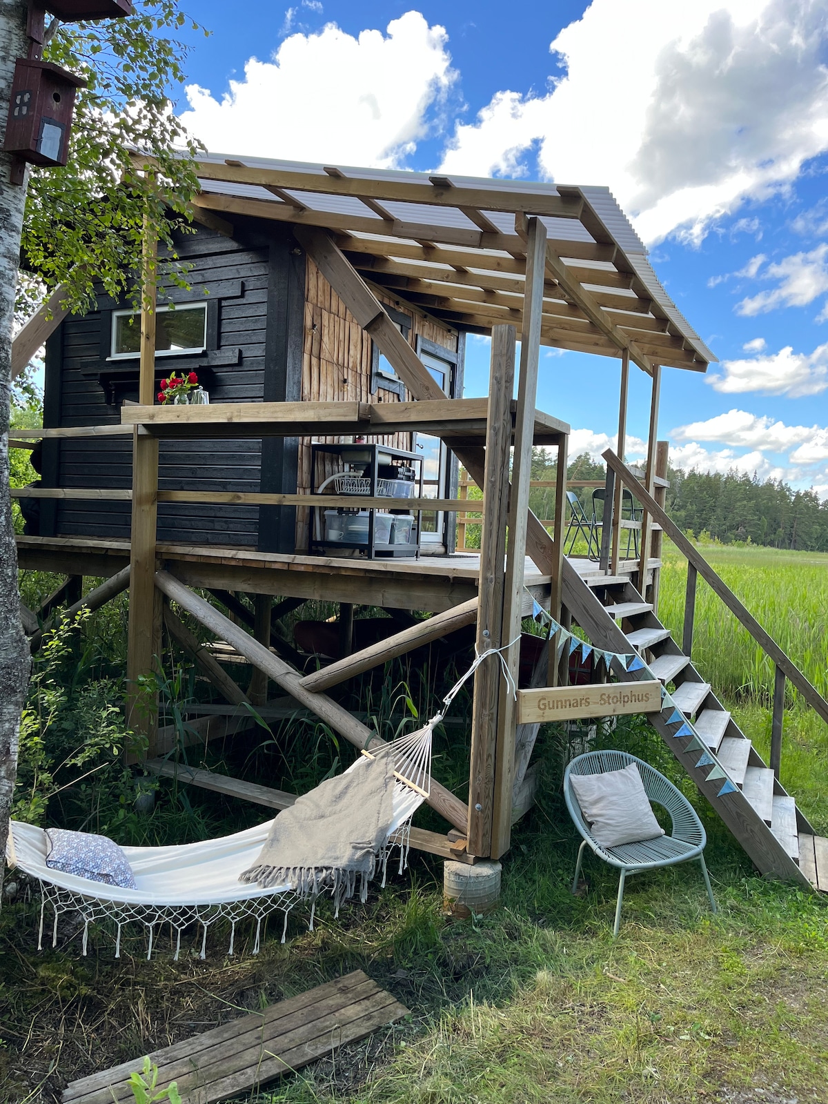 Stillhet vid sjön och bo i ett unikt stolphus