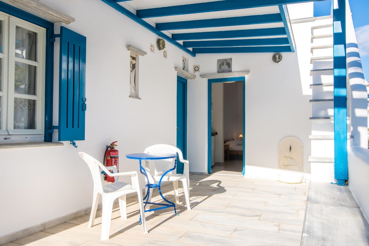 A pocos metros del puerto de Tinos, un espacio cálido y totalmente renovado (12 m2), ideal para una o dos personas, te espera para darte la bienvenida. La vista desde el tercer piso (sin ascensor) al puerto por un lado y a la pintoresca calle comercial empedrada por el otro es mágica. Una de las ventajas es la gran terraza privada, ideal para momentos de relajación y tranquilidad. Por último, a poca distancia hay todo lo que uno pueda necesitar, como restaurantes, bares, mercado de sopas, etc.