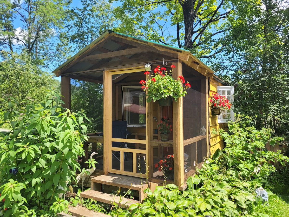 Una acogedora cabaña a orillas de Cayuta Creek, inmersa en la belleza natural. Ubicado en nuestro huerto orgánico y sidrería de 75 acres, está a poca distancia en auto de Ithaca, Watkins Glen, bodegas de Finger Lakes, parques estatales y gargantas. La naturaleza te rodea: agua que corre, un coro de ranas arbóreas, castores nadando, águilas calvas pescando truchas. Disfruta de pasar el rato y comer en una terraza envolvente con vistas al agua. Fácil acceso, sensación remota. *Inodoro de compostaje*