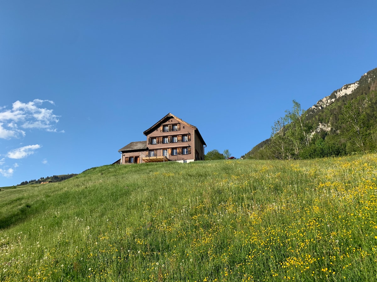 The beautiful lodging is combined with an older farmhouse, which is located more remote and surrounded by woods and meadows with views of the beautiful Glarus mountains. In this area you can enjoy the tranquillity, as a leisure activity there are many places of interest and sports facilities, such as hiking in the mountains of Amden or on the Speer - King of the Pre-Alps. If the weather is fine, you can enjoy a fantastic view of Lake Constance.