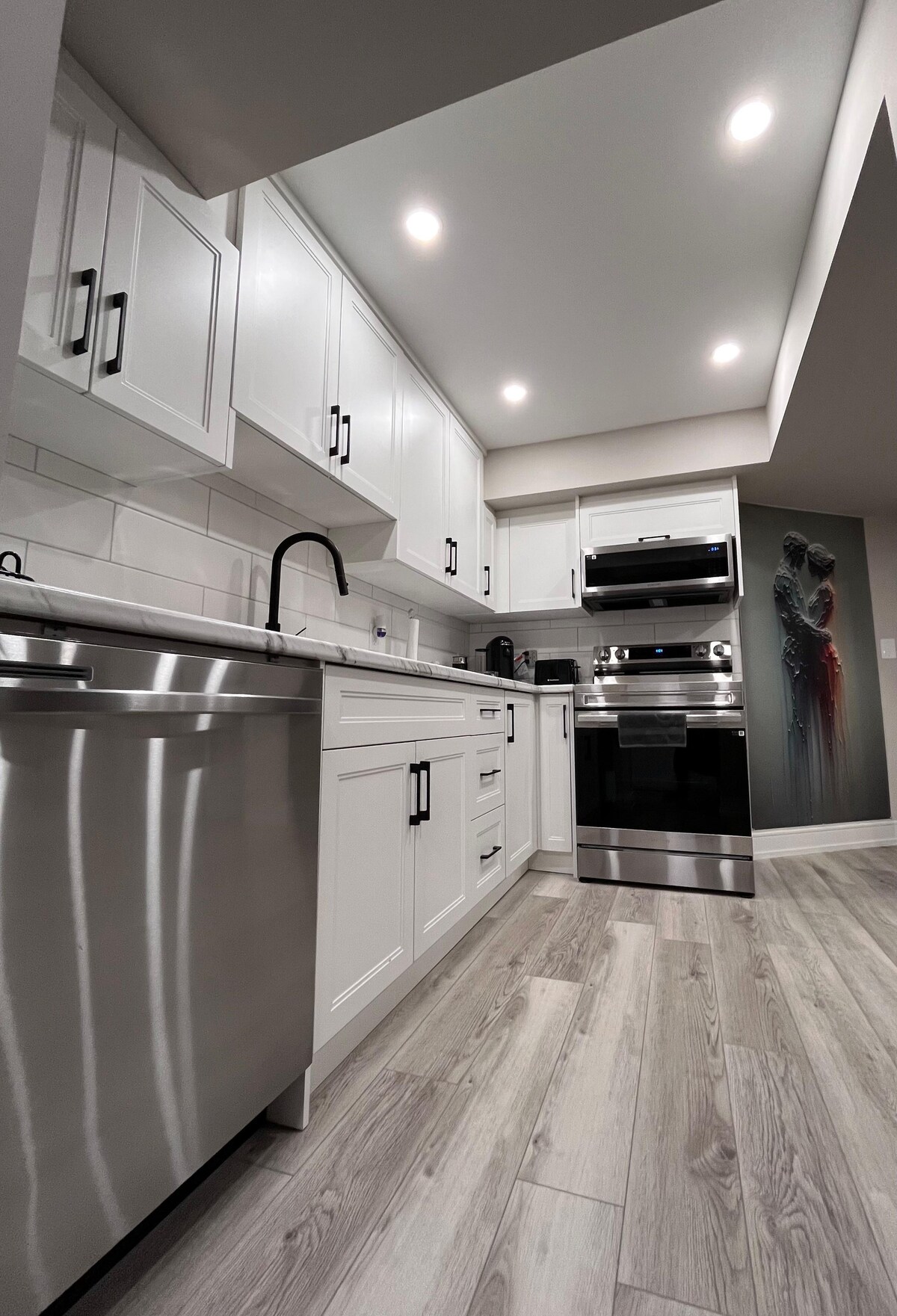 Apartamento en el sótano completo de una casa nueva que apareció recientemente en la revista Toronto Life. Totalmente equipado con electrodomésticos nuevos, incluyendo lavavajillas y lavandería. La mejor amortiguación de sonido que podríamos implementar: es muy silencioso. Increíble gimnasio en casa y futbolín. Bonito comedor al aire libre y zona de barbacoa. Incluye 1 plaza de aparcamiento en la entrada, sin embargo, el aparcamiento en la calle no suele ser un problema, aunque técnicamente no está permitido. La estación de Kipling y Loblaws están cerca (fotos adjuntas).