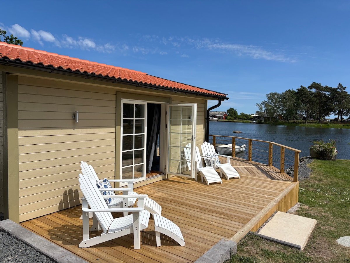 Gästhus på strandtomt med hög semesterkänsla. Här njuter du av lugnet på altanen och ser solen gå ner över vattnet, eller tar en morgonkaffe på framsidans uteplats med morgonsol. Egen brygga med badstege. Lugnt område nära naturen. I området finns badplats med grillplats, utegym, lekplats, boulebana och vandringsled. Du delar trädgården & bryggan med värdfamiljen (2 vuxna, 2 barn). Städning ingår ej. Lakan och handdukar kan hyras mot extra kostnad.