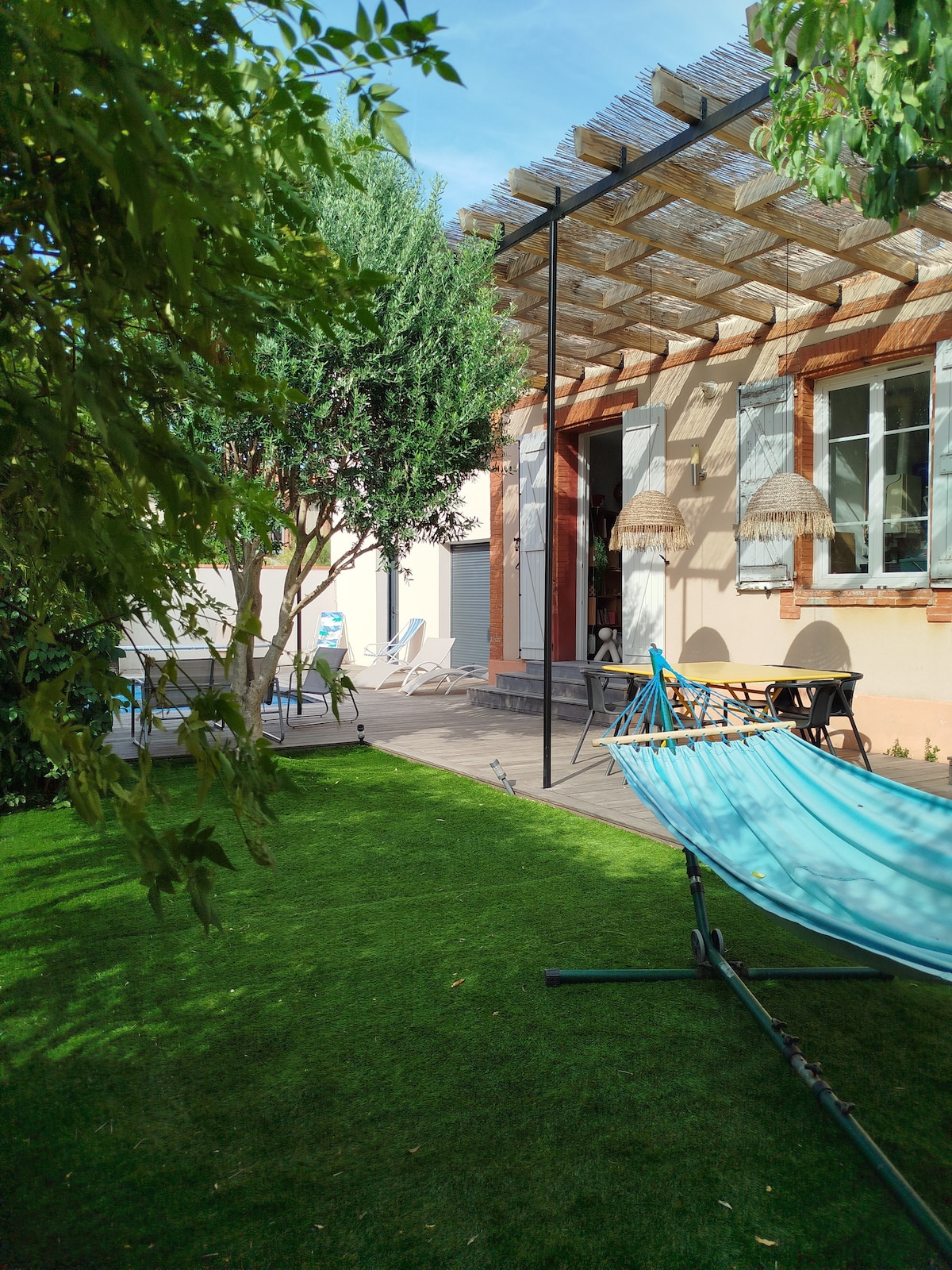 ¡Nuestra casa familiar espaciosa y luminosa en un entorno verde en Toulouse le espera! Además del gran jardín arbolado, una hermosa terraza, muebles de jardín a la sombra y una piscina (junio-septiembre) le refrescarán después de recorrer las calles de la ciudad rosa. Situada a 13 minutos a pie del metro Mirail-U o a 3 minutos en autobús. Cerca de los servicios (panadería, farmacia, tienda de comestibles, carnicería, correos, banco, etc.), cerca de la carretera de circunvalación y de los centros comerciales. Aparcamiento privado. Nota: No se permiten fiestas