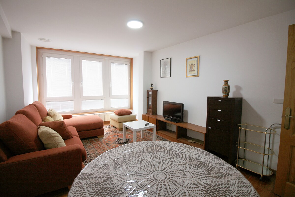Piso acogedor con todo lo necesario para una cómoda estancia. Tienen el Puerto pesquero de Malpica y Playa Mayor, a cinco minutos andando , al igual que cafeterías , restaurantes, supermercados , farmacias panadería....No tiene ascensor!
